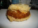 ご飯を平べったくにぎったものを2つ作り、揚げてハンバーグを挟むだけです。