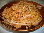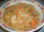 いろんなアレンジ方法を考えています。 今回ためしてみたのは、ソースヤキソバにケチャップを加えてみようというもの。 早速作ってみました。 使った具材は豚肉、タマネギ、モヤシ。 まずは豚肉を炒めます。 20秒ほど炒めたら野菜を投入。 強火で一気に炒めます。 1分ほど経ったら、麺と予め沸かしておいたお湯を入れます。 お湯を使うと温度が下がらないから炒め時間が短くなり野菜がシャキッとするんですね。 炒め始めてから4分ほど経ったら弱火にして粉末ソースとウスターソースとケチャップを混ぜておいたものをかけて混ぜます。 最後は再び強火にしてサーッと炒めて出来上がりです。 5分以内でできます。 味は…… 基本はソースヤキソバなんですけど、トマトの風味がします。 ナポリタンみたいなんですけど、ソースが勝ってる。 美味しかったですよ。