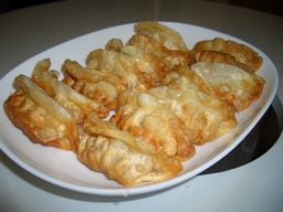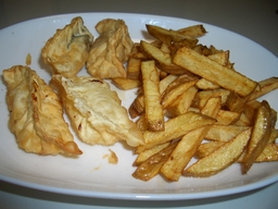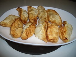 この間を利用して東急ハンズに小さいフライパンを買いに行きました。 小さいフライパンだとフライなどするとき扱いやすいです。 そして早速今日は揚げ餃子を作ってみました。 市販の餃子はよく買うのですが、だいたいいつも焼き餃子にしています。 これはこれで美味しいのですが、揚げ餃子をやりたかった!! というわけで、念願の揚げ餃子。 熱した油に餃子を投入すると思いのほか容易にできました。 揚げ餃子に合うのはやはり塩でしょう。 めちゃ(゚д゚)ウマーです。 念願の揚げ餃子を十分に味わったのですが、それでは飽き足りません。 次はオリジナルな餃子に挑戦です。 餃子の皮はスーパーで買っておきました。 オリジナルの具を皮で包みます。 皮を包むのって難しいのかと思いきや、案外簡単にできました。 そしてできたのがコレ。 見た目は案外普通なのではないでしょうか。 しかし!! 具その1はマシュマロです。 カラッと揚がった皮の中でマシュマロがとろけています。 以前、焼きマシュマロを紹介しましたが、こういう食べ方も有りかな、と。 そして具その2はチョコバナナ。 板チョコを割ったものと、バナナを切ったものを餃子の皮で包みました。 これはかなり美味しかった!! チョコレートがとろっとしていてバナナに絡みます。 なかなかのデザートでした。 と、ここで調子に乗って第三弾やってしまいました。 今度はチーズ入り。 これはかなり、イケル ![]() 居酒屋のおつまみみたいです。 そして、バナナなしのチョコレート入り。 やっぱりバナナ入りの方が美味しいかな。 そんで、せっかくなんでフライドポテトも作ってみました。 これはこれはお店で出しても大丈夫やろう(笑) 今日はいろんなフライを楽しんだのですが、メタボにならんように気をつけなければ……