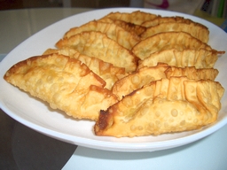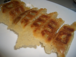 ご想像の通り、皮の中にアイスクリームが入った揚げ餃子です。 作り方は以下の通り 1.アイスクリームを餃子の皮につつみます。 このとき、しっかりと皮を閉じるように気をつけます。 2.アイスクリームをつつんだ餃子を冷凍で冷やします。 中のアイスクリームがしっかりと固まるようにします。 3.高温に熱した油で瞬時に揚げます。 4.できあがりです。 みためは普通の揚げ餃子ですが… 中身は バニラアイスクリームです。 皮は熱くてパリパリ、中はひんやりトロトロ。 絶妙です。 ちなみに今回のアイスクリーム餃子を作るにあたっては注意点が幾つかあります。 まず、皮はしっかりと閉じることです。そうしないと、中のアイスクリームが流出して焦げた塊になってしまいます。 次に、一度アイスクリームを包んだら、よく冷やすことです。中のアイスクリームがよく冷えていると、揚げたときに溶けにくくなります。 そして、油の温度を下げないことです。温度が低いと、皮が揚がるまでに時間がかかり、中のアイスクリームが溶けてしまいます。 少しずつ揚げるなどの工夫が必要だと思われます。 瞬時に揚げると皮が揚がり、中身が溶けていないアイスクリーム餃子ができます。 皮の揚がる時間とアイスクリームが溶ける時間の差を利用するわけですね。 食べるときは、できるだけ一口で食べたほうが良いです。 そうでないと、溶けた中身が流出してしまいます。 ぜひ一度試してみてはいかがでしょうか。