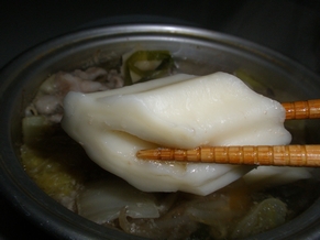 ![]() 一人で鍋。 鍋といえば、以前から気になっていた具材があったんです。 今まで食べたことの無い具材。 関東においてはおでんの具として人気があるという…… 大阪ではお目にかかったことがありませんでした。 そう、ちくわぶです。 ちくわの形をした麩? 関西の人はほとんど食べたことがないのではないでしょうか。 以前、テレヴィの企画で、関西の人に食べさせて不評だったというのを見たことがあります。 一体どんな食べ物なんだと思っていたのですが、自分の舌で確かめるべく、遂に買ってみました。ちくわぶ。 封を気って取り出すと、意外とずっしりとしています。 斜め切りにして入れろとのこと。 想像していたよりも硬い感触です。 お鍋でグツグツしていただいてみました。 この食感、どこかで体験したことのある…… ![]() ![]() ![]() きりたんぽ ![]() すいとん ![]() だいたいそんなところです。 モチモチしています。 結構好きかも。 知らずにこれをちくわと思って口に入れたら肩透かしだというのはわかります。 でも、これはありなのではないでしょうか。 次はおでんに入れて食べてみたいです。