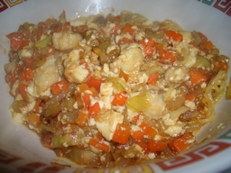 マーボー豆腐と焼きそばのコラボレーション。 作り方(今回の場合)。 細かく切った鶏の皮、みじん切りにした野菜(タマネギとニンジン)を炒めます。 次に、市販のマーボー豆腐のソースを投入。 更にさいの目に切った豆腐を入れ、予め電子レンジで温めておいたソバを投入。 適度に温まれば完成です ![]() ここに、マーボー豆腐と焼きそばが出逢ってしまいました。 見た目は決してよくありません。 一見、チャンプルーのようでもあり、胃の中のようでもあります。 が、味は良好。 ニンジンの食感がいい感じになっていました。 まるでタケノコみたい。 鶏皮もマッチしていました。 敢えてマーボー豆腐と焼きそばを合体させる必要性は不明ですが、なかなかイケるということは確かです。 気になった方はお試しください。