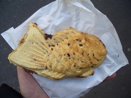 甘い和菓子の一つに鯛焼きがあります。 しかし、一口に鯛焼きと言っても、様々です。 東京には鯛焼き御三家と称される老舗があります。 今回、この御三家を中心に、東京の鯛焼き屋さんを5軒はしごして味をチェックしてきました。 まず最初に訪れたのは御三家の一つ、四ツ谷のわかば。 実は、今回で4回めの来店です。 いつのまにかリピーターになっていました。 いつもは夕方に行くのですが、ものすごい行列で30分待ちは当たり前でした。 今日は朝の10時頃だったので、お客もまばら。 わかばの鯛焼き わかばの鯛焼きは、生地が分厚く食べ応えがあります。甘すぎず、上品な味です。 1尾126円です。 次に訪れたのが御三家の一つ、麻布十番の浪花家総本店です。 以前訪れたときは、品切れ状態で、焼きあがるまで1時間待ちだったので諦めたという経緯があります。 このお店、「およげたいやきくん」のモデルになったそうです。 以前、そのことでミュージックステーションにも出ていました。 今日は11時の開店とほぼ同時に行ったのですんなりと買えました。 浪花家総本店の鯛焼き 皮が薄いです。すごくアツアツでした。あんこは滑らかで、けっこう甘いです。少し小ぶりかな。1尾150円です。 次に訪れたのは根津の鯛焼きです。 以前、根津に立ち寄る機会があり、鯛焼き屋さんをみつけたのですが、閉っていたので「いつか来てやろう」と思っていました。 やっと実現しました。 11時50分くらいに行ったのですが、すでに数人の行列ができていました。 それでも、いつもわかばで並ぶことを思ったら楽なもんです。 根津の鯛焼き こちらも生地が薄いです。しっぽがパリッとしていました。1尾140円です。 こちらのお店は、次に紹介する人形町の柳家の暖簾分けしたお店だそうです。 根津をあとにして向かったのが、人形町は甘酒横丁にある柳家です。 御三家の一つです。 開店直後の12:35くらいに行ったのですが、すでにすごい行列ができていました。 ここまで順調にきていたのに…想定外でした。 職人さんが少なく、焼くペースが遅い上に、オバサマたちが箱買いするからですね。 でも、それだけ人気なんだなぁと思いながら待つこと30分と少し。 柳家の鯛焼き まず、大きいです。そして生地が美味しいです。おこげが付いていて香ばしいです。しっぽがパリッとしています。すごいアツアツです。職人さんは、これを素手で型から剥がしているんです。すげぇ。頭よりもむしろしっぽの方に餡が詰まっているような感じです。程よい甘さです。一尾130円です。 最後に訪れたのが代官山の黒鯛です。 ここは老舗というわけではないようで、代官山というだけあって何やらカジュアルな雰囲気が。 抹茶や黒ゴマ、季節限定で紅茶のフレーバーも販売していました。 それまでの4軒は鯛を一つずつ焼き上げる型を使って焼かれたものでしたが、このお店は6つ同時に焼き上げる型を使っていました。 よく見かける鯛焼きと同じような感じです。 大と小があるみたいです。 今回はプレーンの大を注文してみました。 生地がサクッとしているのですが、餡との間に少し空洞がありました。 真ん中のへんに白玉が入っていました。